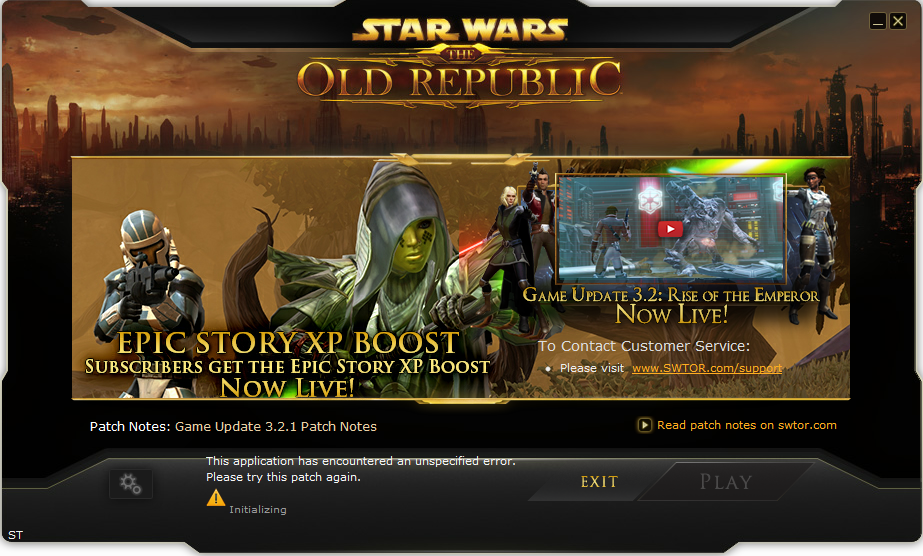 Star Wars The Old Republic Unspecified Error With Patch Unable To Communicate With External Ui